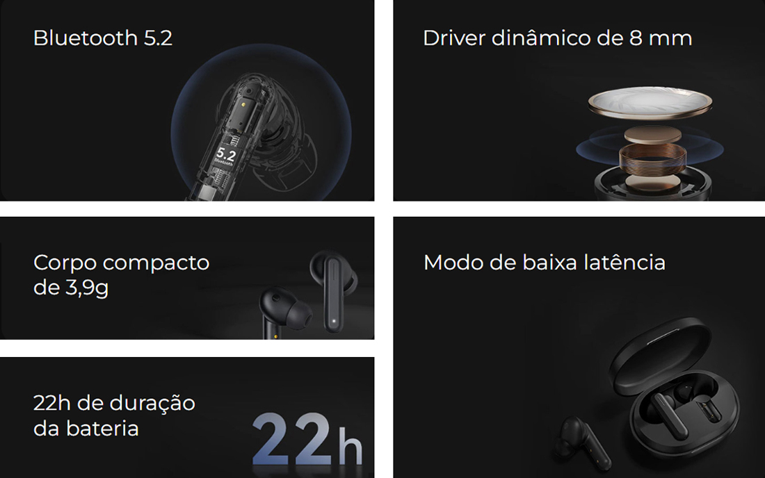 dinâmicos de 8 mm e codec AAC, mergulhe em áudio de alta qualidade, enquanto o