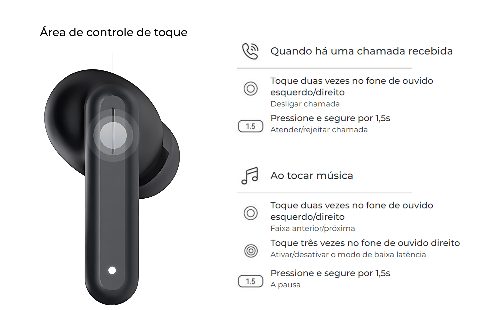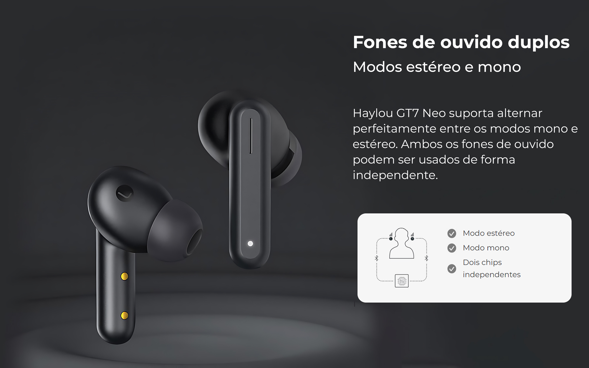 permitindo o uso de um ou ambos os fones para música ou chamadas. Com o modo