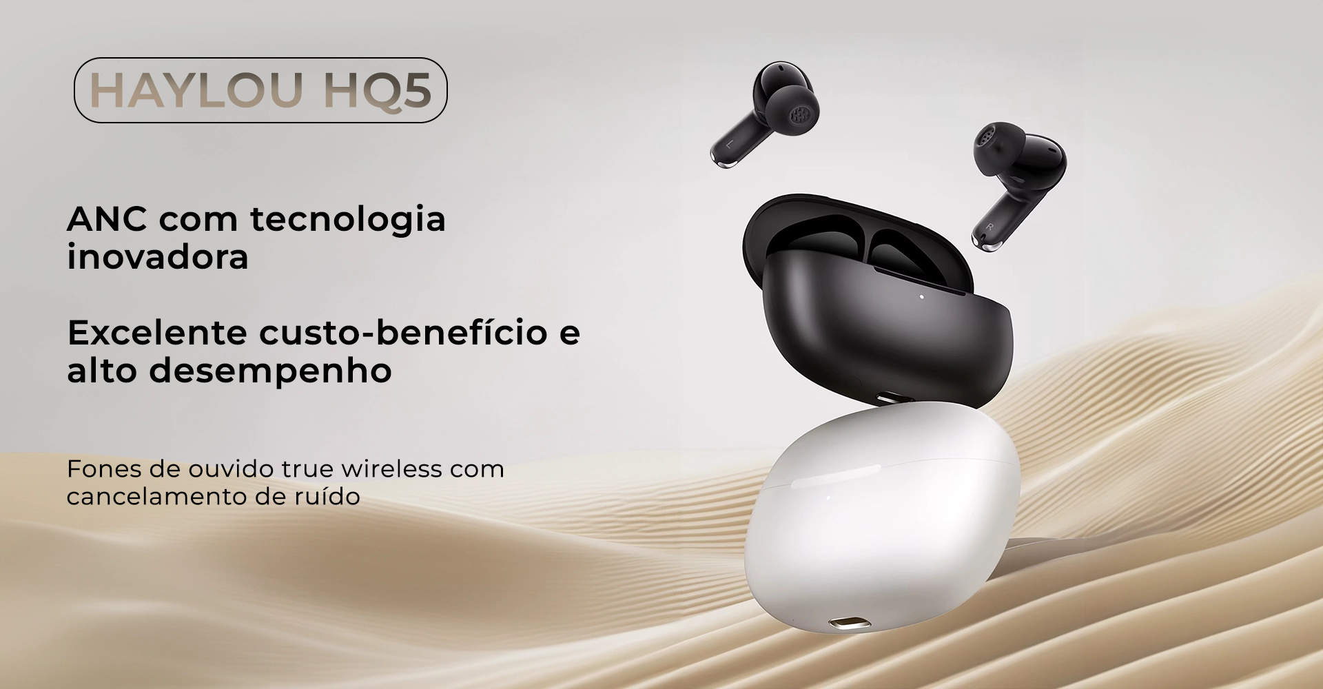 Os fones Haylou HQ5 T020 entregam som imersivo com drivers de 10 mm e dupla tecnologia de cancelamento de ruído (ANC + ENC), ideal para chamadas claras e músicas sem distrações. Com sensor tátil, LEDs no estojo e até 5 horas de uso contínuo. Recarga via USB-C e certificação IPX4, perfeitos para o dia a dia.