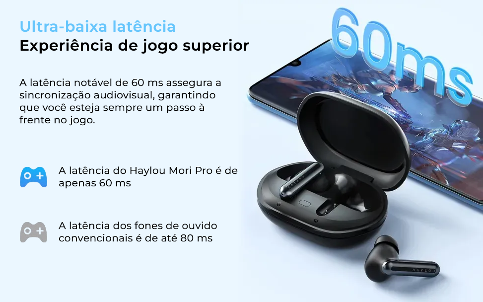 O avançado algoritmo de processamento de áudio do Haylou Mori Pro reduz significativamente a distorção de frequência e restaura com precisão os detalhes do som, permitindo que você desfrute da música como se estivesse em uma sala de concertos.