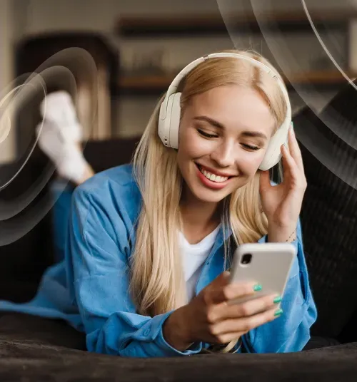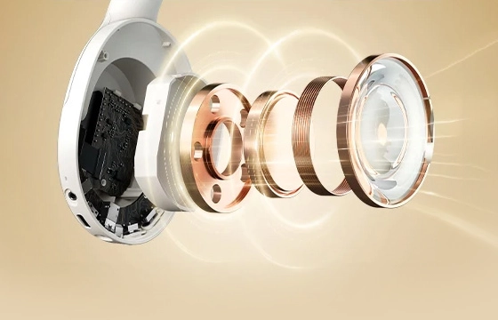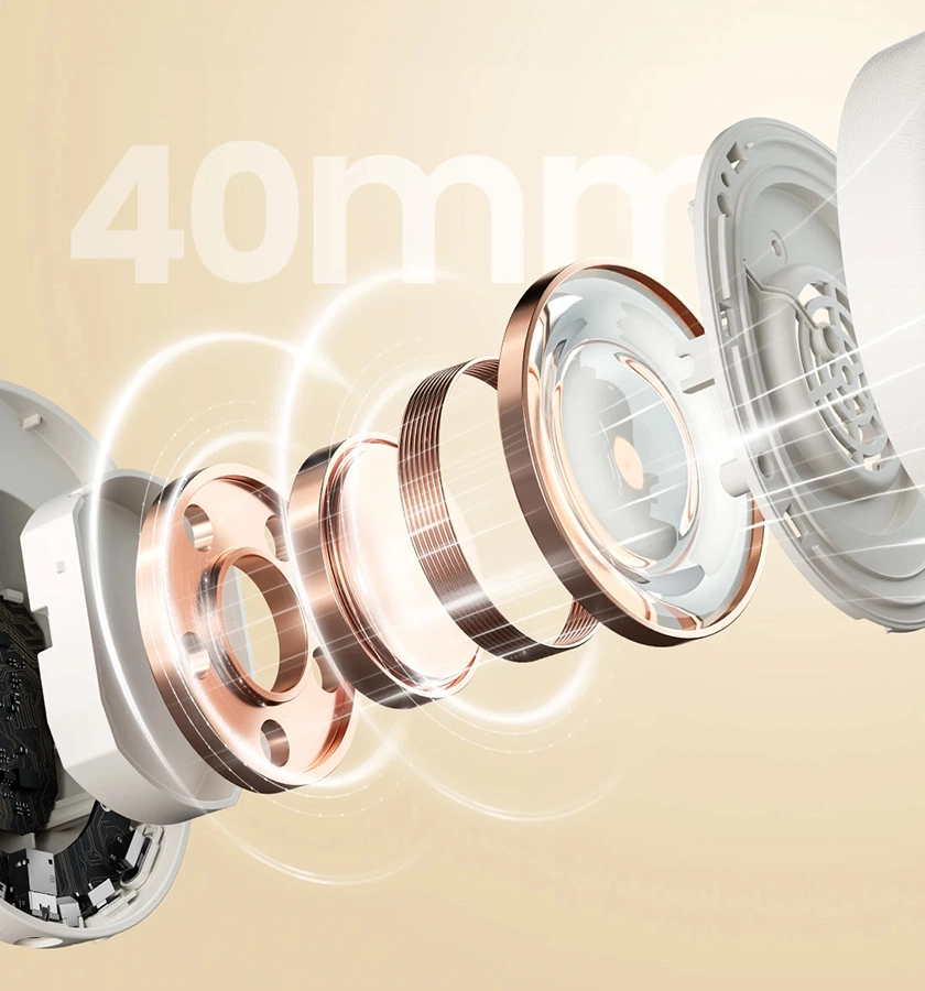 Desfrute de áudio Hi-Res com drivers de 40 mm, proporcionando equilíbrio entre agudos nítidos, médios ricos e graves robustos.