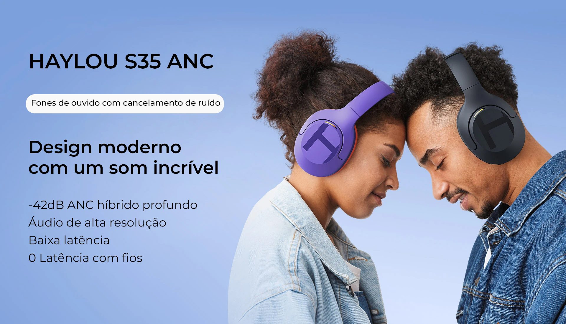 Haylou S35 ANC combina "Very Peri" (cor do ano da Pantone) e "Hermes Orange". O atraente logotipo "H" e o design elegante farão você se destacar em qualquer ocasião social.