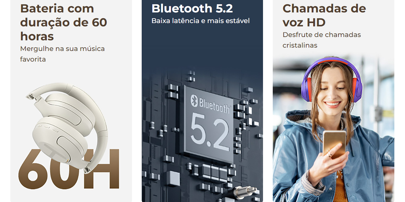 bateria poderosa de 600 mAh, desfrute de até 60 horas de reprodução com ANC